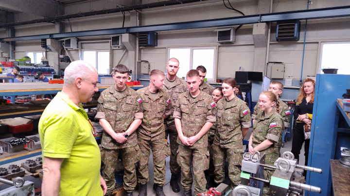 Okrem skúšania sme opäť u nás na exkurzii privítali študentov a študentky z katedry strojárstva Akadémie ozbrojených síl gen. M. R. Štefánika. Vojaci si prezreli nielen nástrojáreň a výrobu foriem pre vstrekolisovanie, ale aj samotný proces lisovania plne automatizovanej výroby. Predstavili sme im najnovšie technológie – robotizáciu za použitia Kuka či Arburg robotov. Zoznámili sa s lisovaním plastových komponentov pre automobilový priemysel a bielu techniku.
