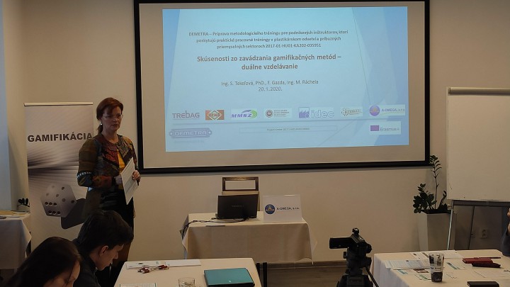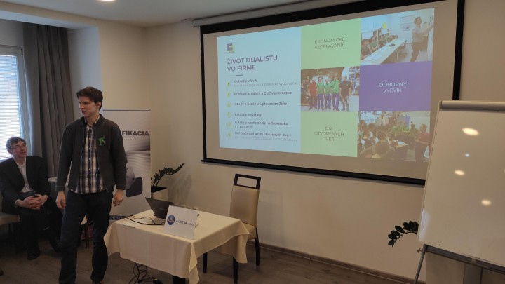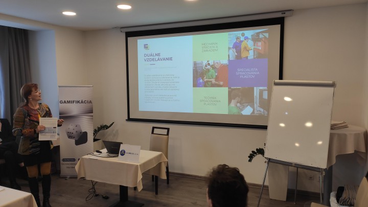 Prednášali sme v Trenčíne na konferencii o „gamifikačných metódach“ V januári 2020 sme boli pozvaní na záverečný workshop medzinárodného projektu DEMETRA / Erasmus do Trenčína predstaviť našu spoločnosť a duálne vzdelávanie v odbore Mechanik strojov a zariadení. Konferenciu organizovala spoločnosť A-Omega s obchodnou komorou SOPK pre školy, výchovných poradcov a poradenské kariérové spoločnosti ako aj zamestnancov CPPP (pedagogicko-psychologické poradenstvo a prevencia). Konferenciu otvorila p. M. Paveleková z Národnej agentúry programu Erazmus+. Nové odbory aplikovanej chémie predstavila p. V. Žatkovičová zo ŠIOV (Štátny inštitút odborného vzdelávania). Boli tu prezentované kreatívne a zaujímavé metódy vzdelávania a učenia, ktoré testovali a navrhovali pedagógovia zo štyroch štátov. Našu krajinu sme zastupovali my, pretože sme mali viacero metód odskúšaných v duálnom vzdelávaní. František Gazda, študent – maturant, prednášal o spôsobe výučby a vzdelávania na odbornom výcviku v spoločnosti Esox s.r.o. a poukázal na úzku náväznosť na teoretické poznatky z SOŠP na Demänovskej ceste. Jeho vystúpenie bolo ohodnotené veľkým záujmom a uznaním, pretože skutočne výborne prednášal. Škoda len, že záujem zo strany štátnych poradenských inštitúcii bol minimálny. Nové odbory, ktoré vznikli a potrebujú sa dostať do povedomia rodičov a žiakov, si ich pozornosť vyžadujú. Pretože plastárina a spracovanie plastov naše hospodárstvo „živí“. Technik spracovania plastov, Operátor spracovania plastov aj Špecialista spracovania plastov – sú prvé odbory, ktoré pre našich 115 plastárskych podnikov konečne vychovajú prvých kvalifikovaných zamestnancov. Myslím, že to stojí za pozornosť verejnosti. Viac informácii a fotodokumentácia na stránke www.esox-plast.sk -S. Tekeľová, F. Gazda-
