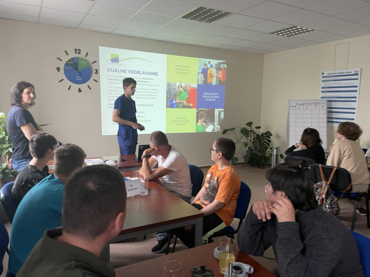 V marci žiaci dostali zadanie vyrobiť vešiaky na odev. Niektorí ich vyrábali v škole a niektorí doma. Boli sme prekvapení, aké skvelé výrobky so sebou priniesli a prezentovali nám ich výrobu. Využili materiály ako drevo, plast i kov. Potom nasledovala prehliadka firmy. Ukázali sme žiakom našu novú robotickú linku a nové automatizácie. Po exkurzii ich čakala súťaž „Lov na indície“, pri ktorej im asistovali naši súčasní dualisti. Slepé mapy, konštrukcia zadaného výrobku aj kvíz zvládli všetci bez problémov.