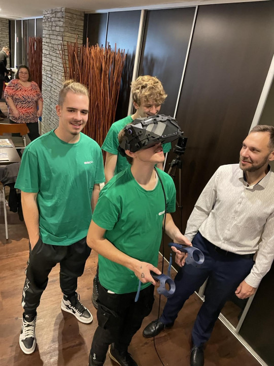 Na druhý deň si ich virtuálnu realitu vyskúšali žiaci 3.S, naši dualisti, na vlastnej koži. Zaujala ich. Okrem toho vývojové a virtuálne možnosti dokážu zjednodušiť a dopodrobna ukázať, napr. čo obsahuje vstrekovacia forma, ktoré časti na čo slúžia, či ako fungujú jednotlivé prvky. Je preto ideálne, že v Esoxe vidia hotový produkt. Môžu si naň siahnuť a pritom sa o ňom učiť novou inšpirujúcou formou. Týmto atraktívnym spôsobom získavajú aj nové zručnosti a spôsobilosti.