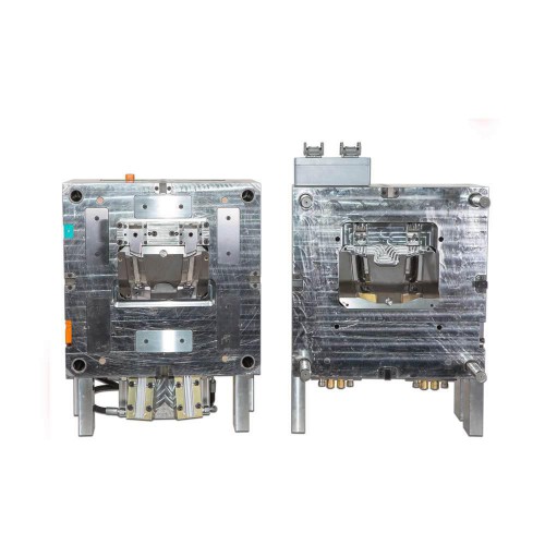 1 + 1 cavity mold of a light-guide for rearview mirror (EU standard) with highly defined light properties. The mold includes two cavity pullers.